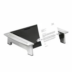EMS Mind Reader PAPERMON-SIL Metal Monitor Stand Riser With Resting Document Holder Easel, Silver