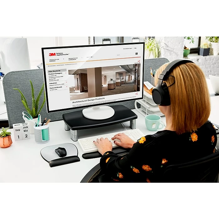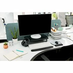 - Contemporary design with stacking columns raises monitor from 1″ to 5 7/8″ in increments of 1 5/8″ to an ergonomically correct level