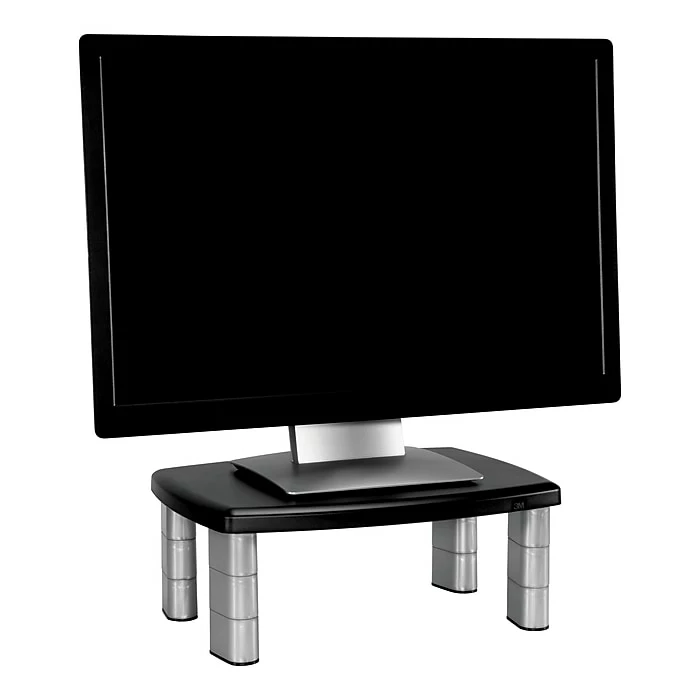 - Contemporary design with stacking columns raises monitor from 1″ to 5 7/8″ in increments of 1 5/8″ to an ergonomically correct level