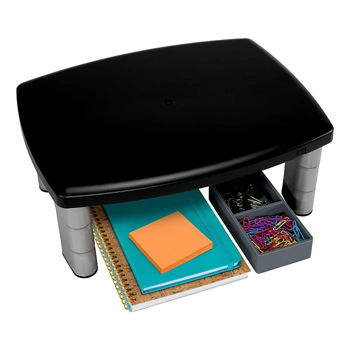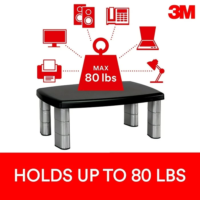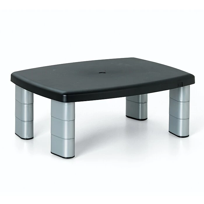 Contemporary design with stacking columns raises monitor from 1″ to 5 7/8″ in increments of 1 5/8″ to an ergonomically correct level. Features 11″ of storage space underneath to maximize desk space. Great for laptops, printers or monitors up to 80 lbs. No skid base keeps stand in place.