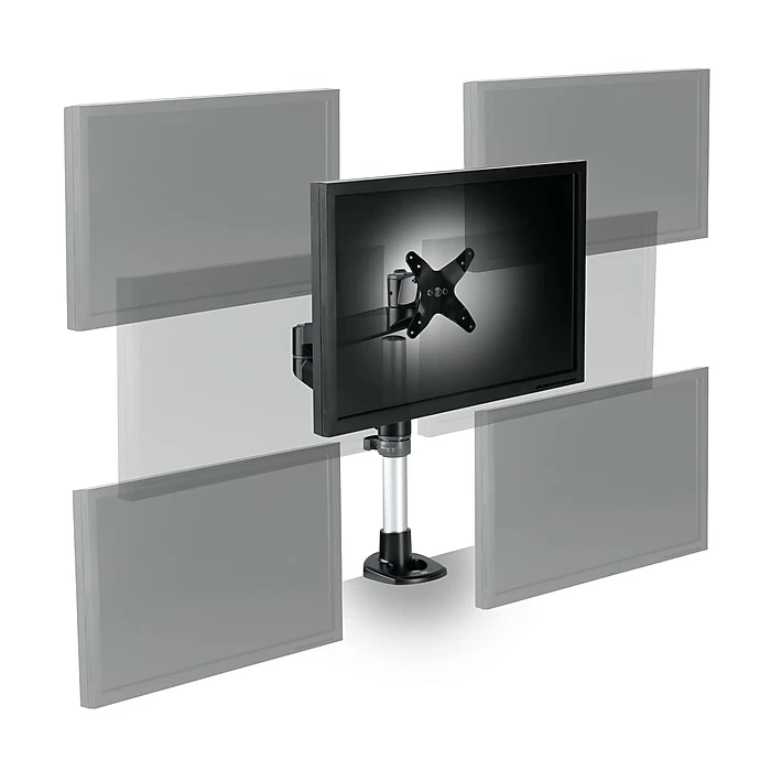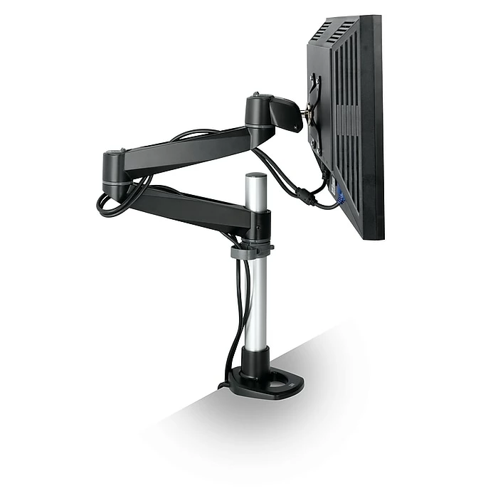 - Dual-swivel arm allows for easy adjustment of monitor tilt, rotation and viewing distance.