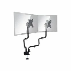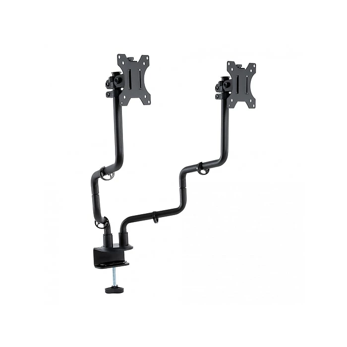 - Each arm holds a 32″ monitor weighing up to 14.5 lbs.