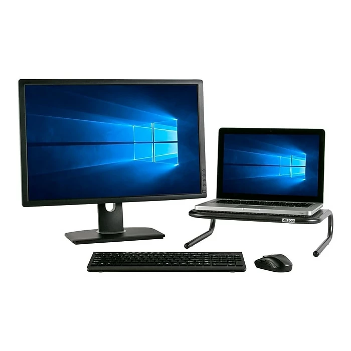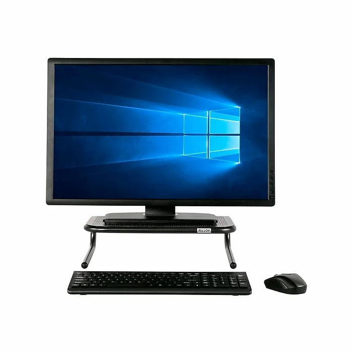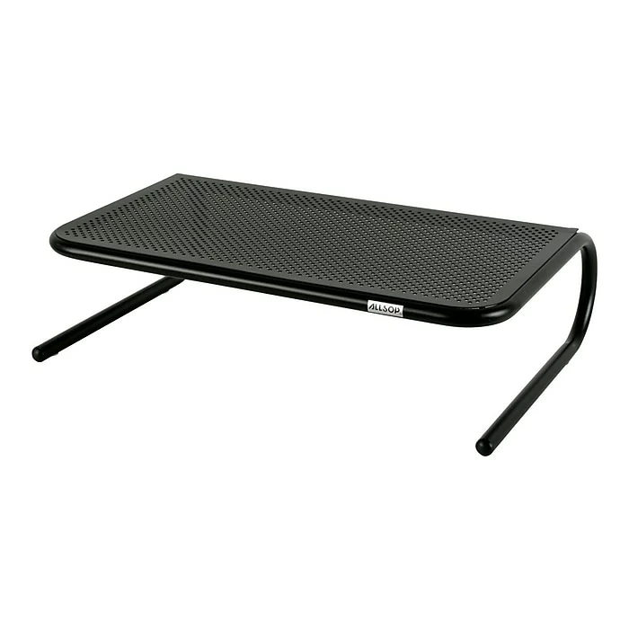 Create an ergonomic viewing experience while working behind the screen with this black metal monitor stand. The wide surface is able to support a monitor that weighs up to 50 pounds, and there is enough space underneath to store a laptop or a keyboard. Reduced neck pain during long working hours with this Allsop monitor stand creates an ergonomic working environment.
