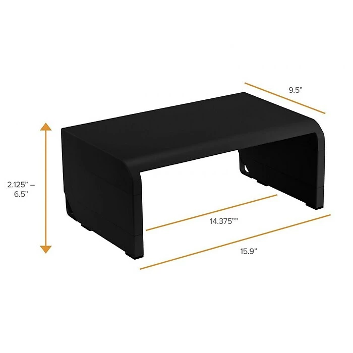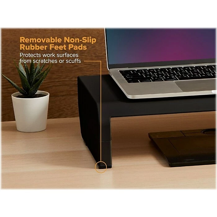 - Four adjustable height options (2.13″, 3.63″, 5″, and 6.5″) allow you to raise computer monitors and laptops to a comfortable viewing position
