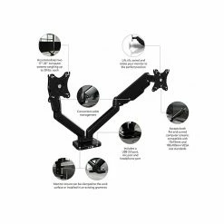- Dual monitor arm accommodates two 17″-32″ computer screens weighing up to 20 lbs. each