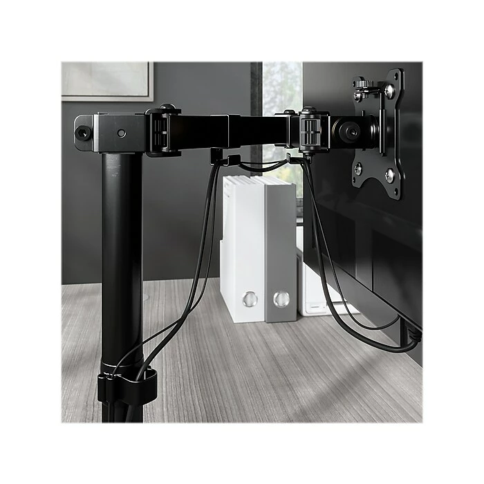 The Bush Business Furniture adjustable monitor arm features a commercial-quality design that’s both ergonomically friendly and built to withstand the rigors of daily use in a professional workspace. Made for a single flat computer screen ranging in size from 17″ to 32″ and up to 17 lbs., this monitor mount can be clamped to any work surface between 0.4″ and 3.3″ thick or installed in a coordinating desktop grommet. Its quick-release mounting plate allows for an easy setup and is compatible with VESA-MIS-D 75 x 75mm and 100 x 100mm square hole patterns.
