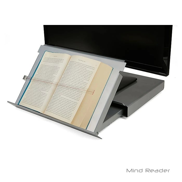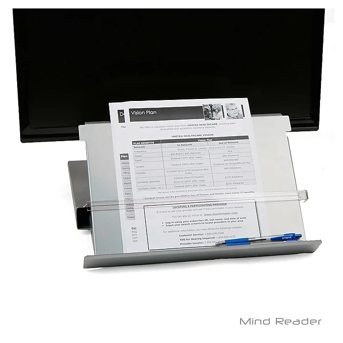 Ever catch yourself slouching over your paperwork, books, or documents trying to read? This monitor stand also has a document holder that allows you to adjust the viewing angles to sit properly and feel comfortable while reading what you need. The lip at the bottom stops the document from sliding off and eliminates back, neck and eye straining while on your computer, so you don’t need to look down constantly if you’re reading and typing on the computer.