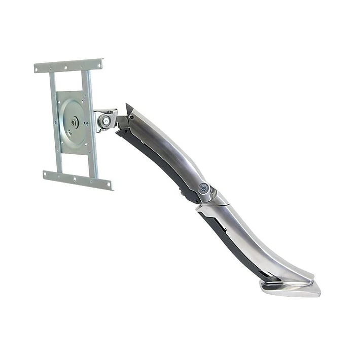 Place large monitors on a wall with this monitor arm. The sturdy design handles 30-inch TV screens and LCD monitors, while a mounting bracket affixes the arm to the wall. Height adjustment optimizes viewing angles so that it’s easy to read data and share it with others. A rotating hinge lets this Ergotron wall monitor arm display photos in portrait mode.