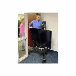 Take presentations to any office space by using this mobile stand. Designed for simple rotation with Constant Force technology, the display stand easily switches from portrait to landscape view without having to reinstall the monitor. This stand has quality wheels for smooth transport from room to room. Wires are effectively hidden on this Ergotron Neo-Flex stand through the included cable management channels.
