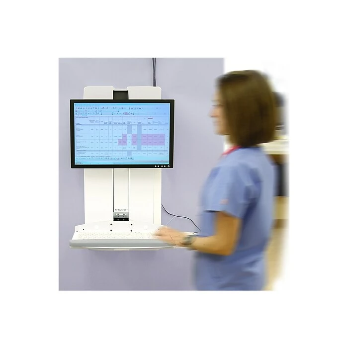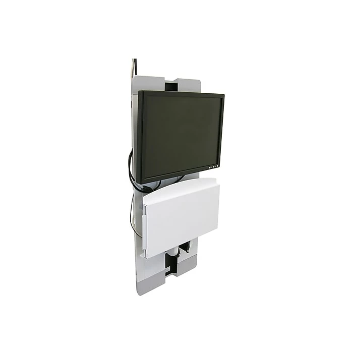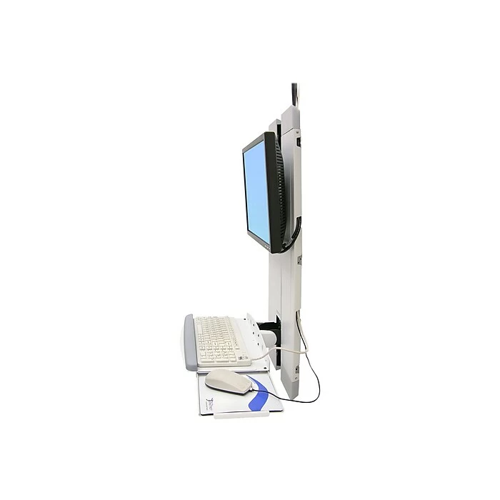 Maximize available workspace in high-traffic environments with this low-profile keyboard and monitor mount. Perfect for hospitals and other busy or space-constrained workplaces, this mount offers easy installation and adds as little as 4 inches of bulk to surfaces when folded. This Ergotron StyleView mount helps ensure ergonomic comfort with up to 9 inches of vertical adjustment and a negative-tilt keyboard tray.