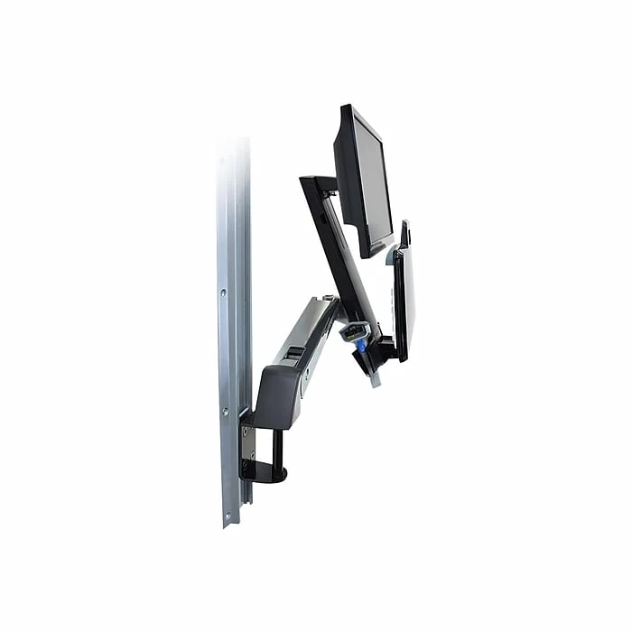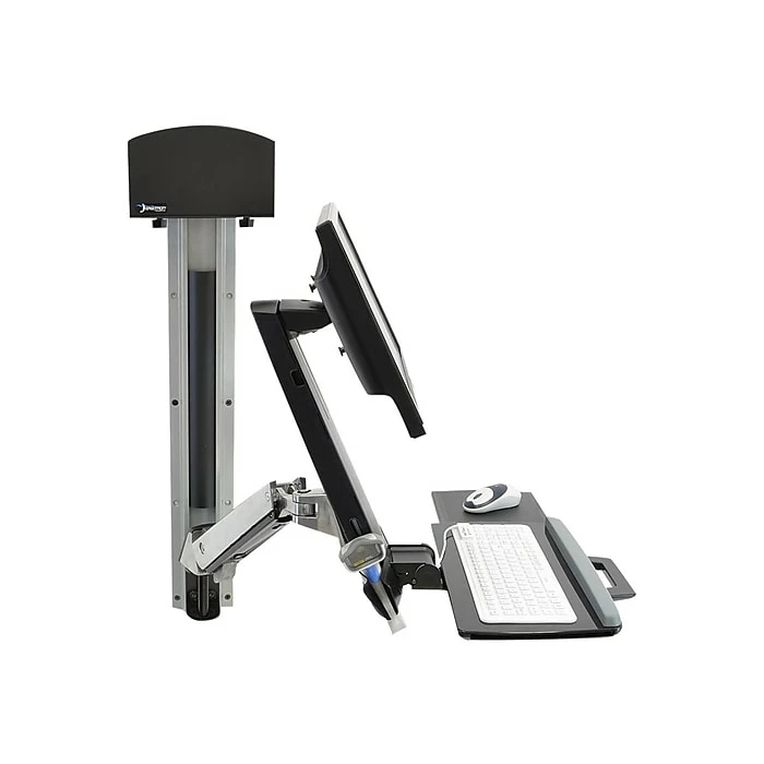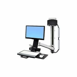 Hide obtrusive cables with the innovative management system that runs through the arm of this sit-stand combo system. The tray of this system is spacious enough for a keyboard and mouse and there is a small CPU holder located at the top of the unit. With the ergonomic back-tilt of the keyboard on this Ergotron StyleView sit-stand combo system, wrists remain in a neutral position for long-term comfort.