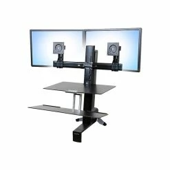 Work more ergonomically at WorkFit workstations by converting it to an ideal height with this kit. This kit enables added height as well as an additional 30-degrees of up and down tilt adjustment, to provide an ideal view of dual monitors. The easy installation of this Ergotron kit makes transforming workspaces a quick and simple process.