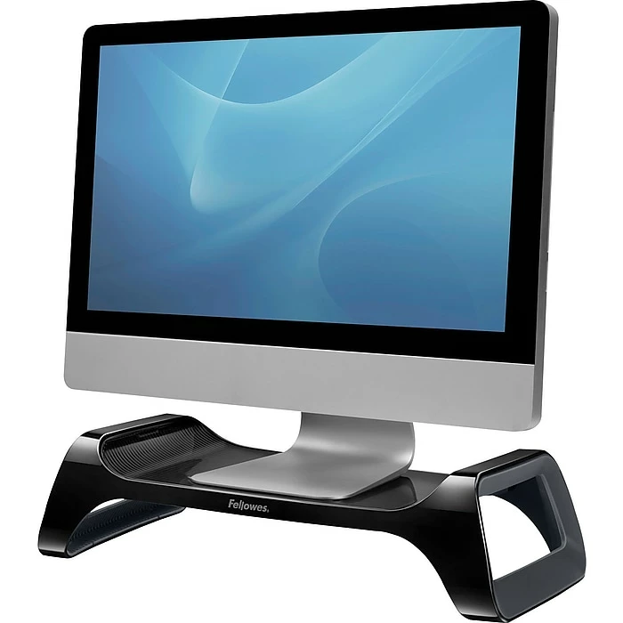 - Innovative design elevates monitor 3-3/8″ above desktop for enhanced viewing comfort