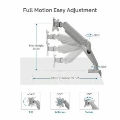 - Fully independent adjustable arm: increase workspace flexibility with 19.75 inches reach and free up desk space