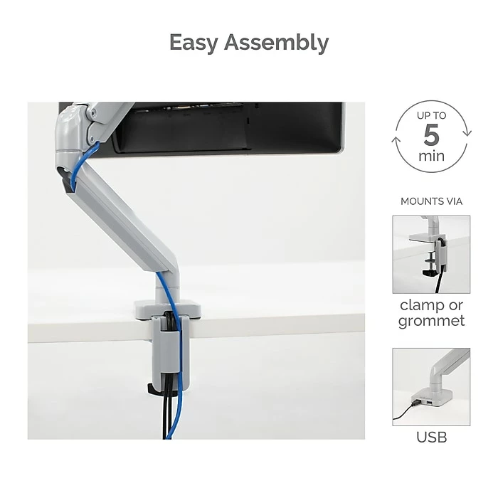 - Easy installation within minutes: effortlessly mount to tables or desks, via clamp or grommet