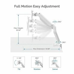 - Fully independent adjustable arm: increase workspace flexibility with 19.75 inches reach and free up desk space