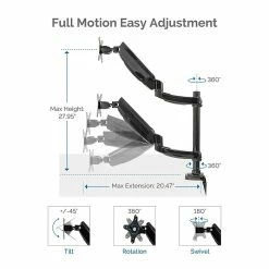 - Fully independent adjustable arm: increase workspace flexibility with 20 inches reach and free up desk space
