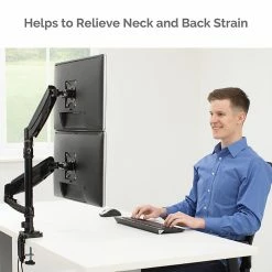 The Platinum Series Dual Stacking Monitor Arm from Fellowes elevates your view to help relieve neck and eye strain while optimizing desk space. Fully independent arms each hold up to 17.6 lbs. or 32 inches monitors and easily install using the Quick Fit VESA plate. Easily mounts to tables or desks via clamp (between .4”-3.35” thick) or grommet (between .33”-2.75” in diameter).