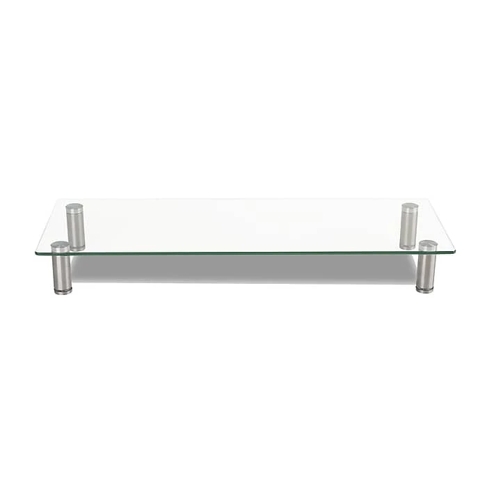 - Elevate your monitor to a proper eye position with this sleek looking tempered glass monitor riser.