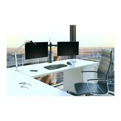 Finding the correct ergonomic height for your monitors and adjusting their distance is easy, thanks to the sturdy and stable Kensington SmartFit Ergo dual extended monitor arm. Clear valuable desk space while improving ergonomics. Wide adjustment range delivers 180-degree swivel, 360-degree rotation (for landscape or portrait orientation), 90-degree monitor tilt adjustment, and arm extension up to 15.7″. Sturdy metal C-clamp and grommet fastener are easy to install and won’t damage or mark the desk or table. Each arm is compatible with displays up to 32″ and 17.6 lbs.