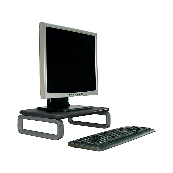 - Raise your monitor to a comfortable viewing height with this monitor riser