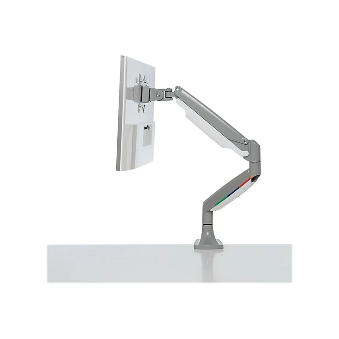 Improve posture, promote proper eye alignment, and support neck and shoulder comfort with the Kensington SmartFit One-Touch height-adjustable single monitor arm. Ergonomically designed to promote wellness and increase productivity, the SmartFit One-Touch height-adjustable single monitor arm incorporates Kensington’s patented SmartFit technology to simplify proper fit and allows users to adjust the height, depth, and angle of their monitors for individualized comfort. Stable at any monitor position, users can easily switch from landscape to portrait mode. A perfect monitor arm for the modern office and a perfect complement to the SmartFit sit/stand desk (K52804WW).