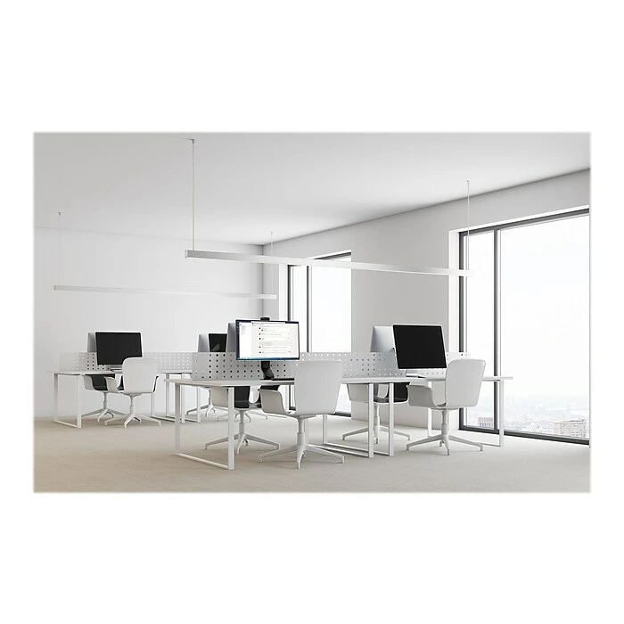 - Cable management system eliminates cable clutter for a cleaner desktop