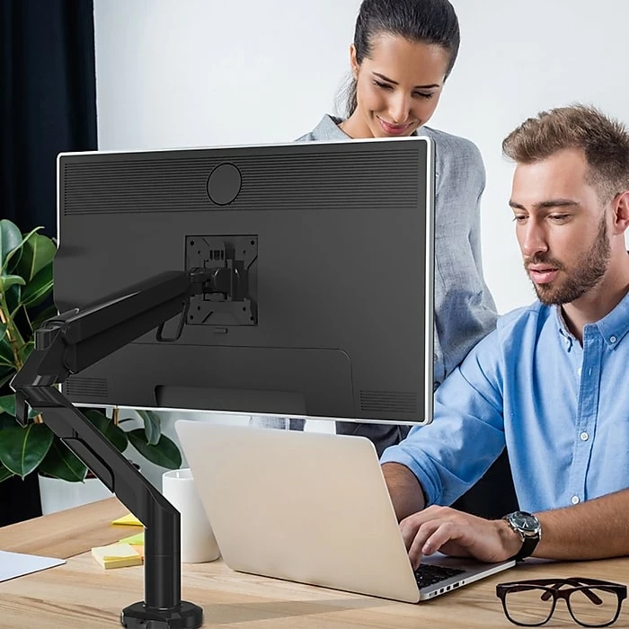 The Loctek MA8 computer monitor desk mount is height adjustable and can swivel and tilt to help position your monitor at the ideal position. Simple, yet elegant, this monitor mount will provide an ergonomic installation. This extension monitor mount is perfect for anyone who wants to easily adjust their viewing angle to an ergonomic level to help reduce neck, back and eye strain while opening up valuable desktop space. Holds monitor up to 26.4 lbs.