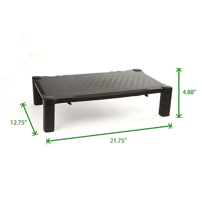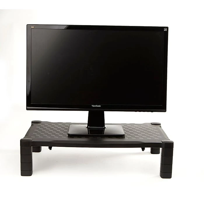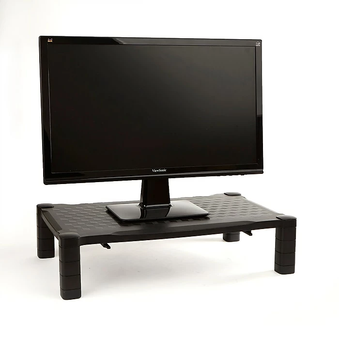 - Raises your monitor to a comfortable viewing height with adjustable legs