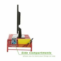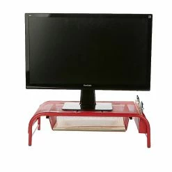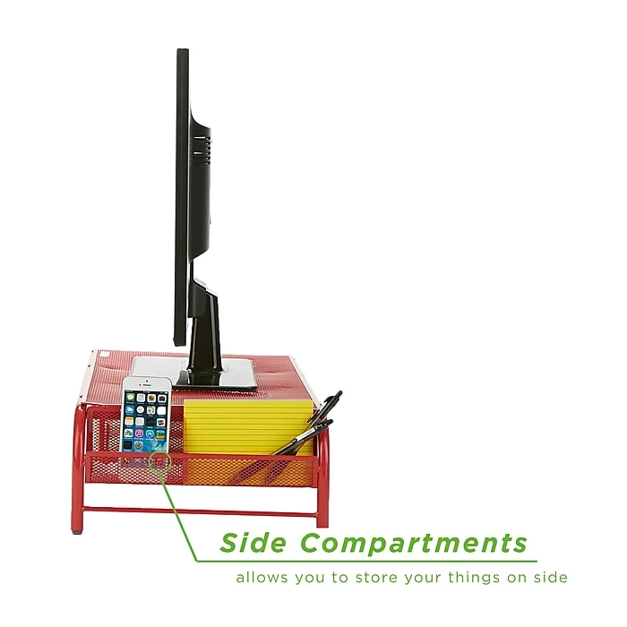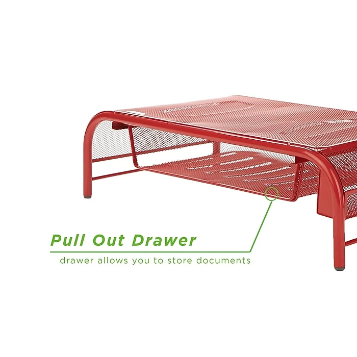 Mind Reader Metal Mesh Monitor Stand And Desk Organizer With Drawer, Desktop Monitor Stand Organizer, Red (MESHMONSTA-RED)