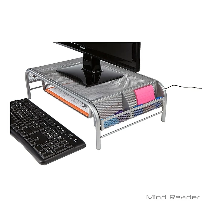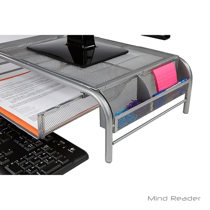 Keep your eyes and neck from straining with this monitor stand. This allows your monitor to adjust to your height so you don’t hurt your neck and eyes. It also comes with a drawer that allows you to store paperwork and stationary needs for a more organized and neat desk.