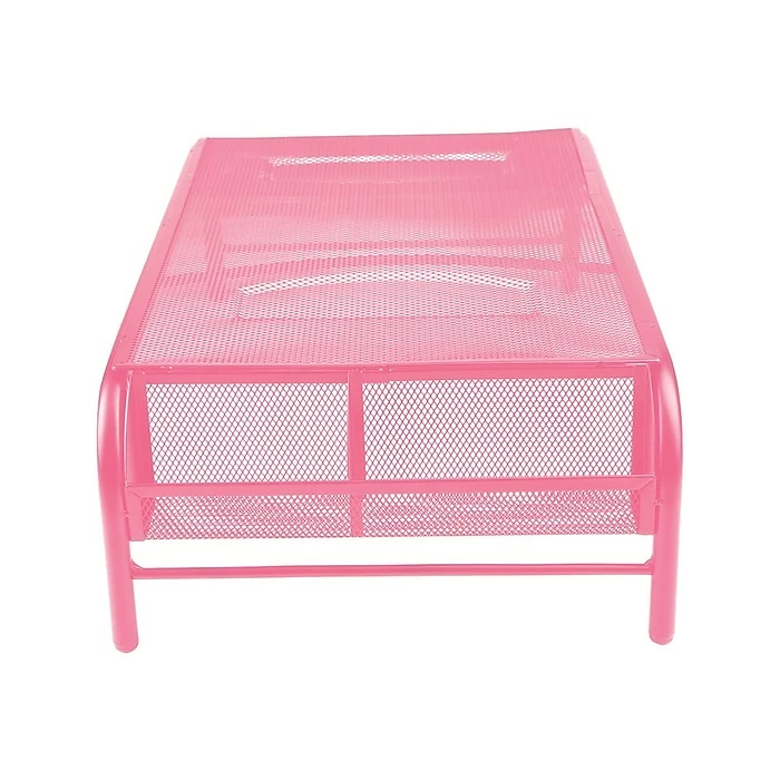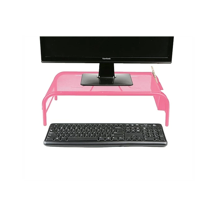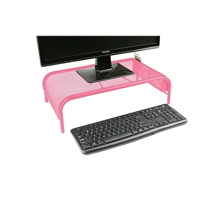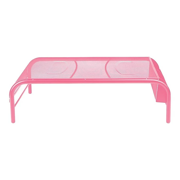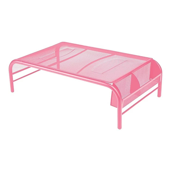 Keep your monitor or laptop at your level for an easier view to reduce neck and eye straining. The metal mesh material allows for great stability and durability. It even has compartments on the side to put stationery items.