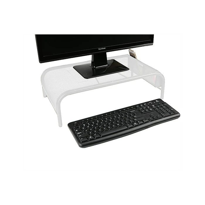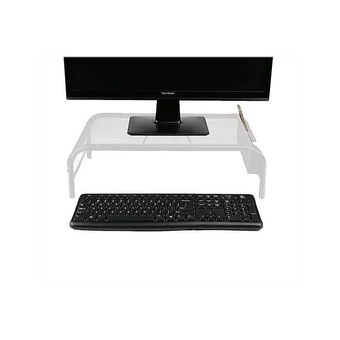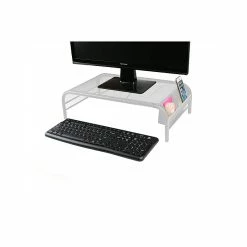 Keep your monitor or laptop at your level for an easier view to reduce neck and eye straining. The metal mesh material allows for great stability and durability. It even has compartments on the side to put stationery items.