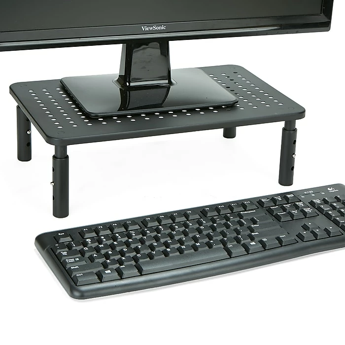 Tired of the neck strain and discomfort while your laptop or monitor sits too low? Look no further, this stylish monitor stand gives just the right amount of boost for comfort. It also helps to save desk room by storing your office supplies underneath the stand.