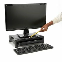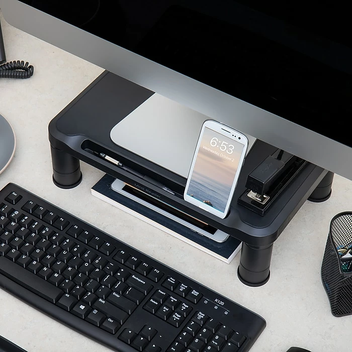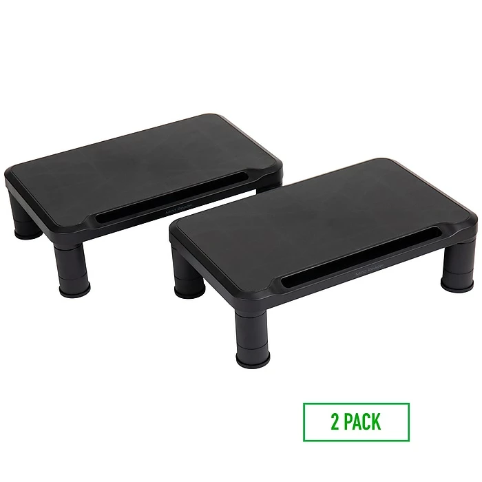 Tired of holding you monitor up with loads of paper? Give your monitor a boost with this sleek designed monitor riser. The Mind Reader monitor stand raises your monitor for maximum comfort, reducing eye and neck strain, and leaves room to store your office supplies. The 2 Pack Monitor Stand Riser from Mind Reader allows you to use dual screens at an eye level position.