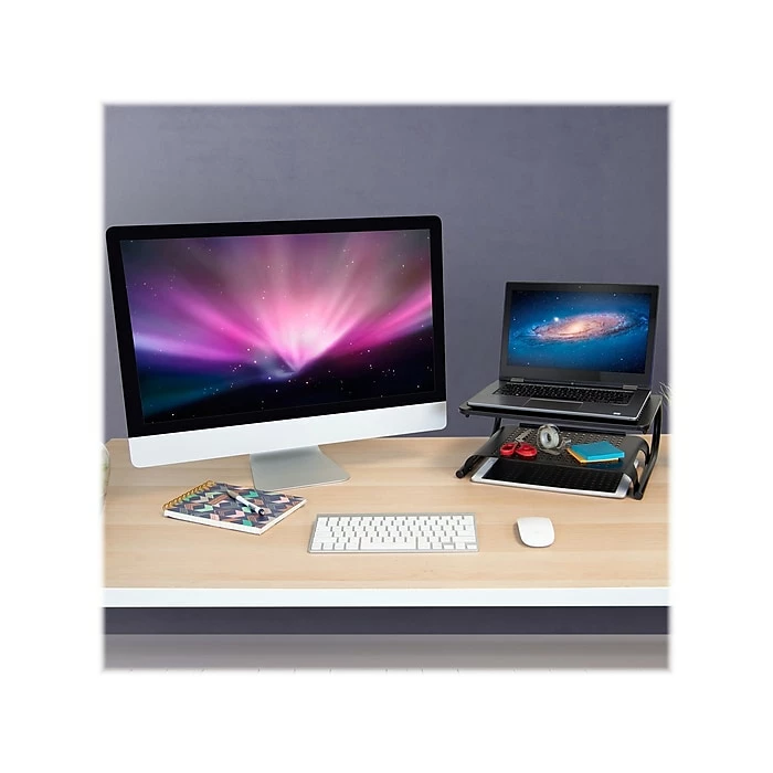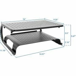The Mount-It! MI-7361 slim metal riser will create a more ergonomic workspace with its extra shelf. Create more desk space by storing office essentials under the riser. The legs feature silicone pads that will protect your work surface from scratches. The sturdy stand can hold up to 44 lbs.