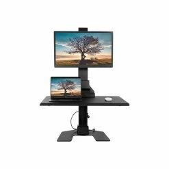 This Mount-It! sit-stand workstation will transform the way you work. This desk converter sits on top of your existing desk and allows you to work comfortably from either a sitting or standing position. The spring-assisted lift mechanism on this workstation allows you to raise and lower the unit in a matter of seconds. Enjoy a compact and easy-to-use sit-stand desk while you improve your health and posture. The full-motion dual-monitor mount allows you to raise the height of your monitor while freeing up more desk space. The height of the monitor can be adjusted to suit your height. Having two monitors will increase productivity and cut down on time going back and forth between documents. Installation is meant to be simple so that you don’t waste valuable time. The large freestanding base requires no modification to your existing desk and provides stable support.
