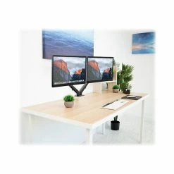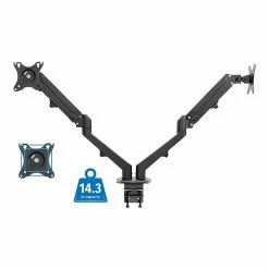 Elevate your two monitors at an ergonomic position and reclaim your valuable desk space with Mount-It! Gas Spring Dual Monitor Desk Mount. Seamlessly adjust the full motion gas spring arms for better positioning to improve posture and relieve neck and back pain. Comes with cable management clips to keep your cables neat and organized. Heavy duty C-clamp mount fits desktops up to 3.1” thick. Quick and easy to install, comes complete with instructions and all the necessary mounting hardware.