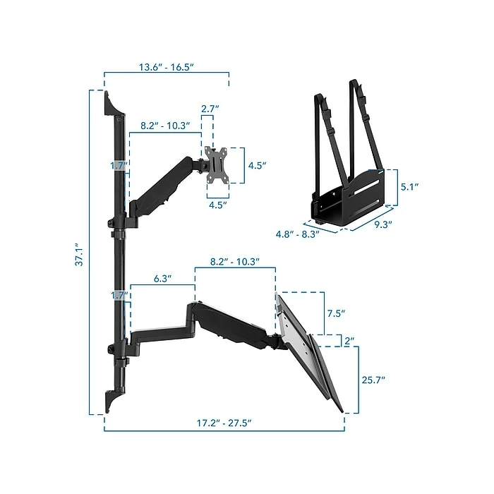 - High-strength steel offers 17.6 lb. capacity for a monitor and 22 lb. capacity for the CPU mount