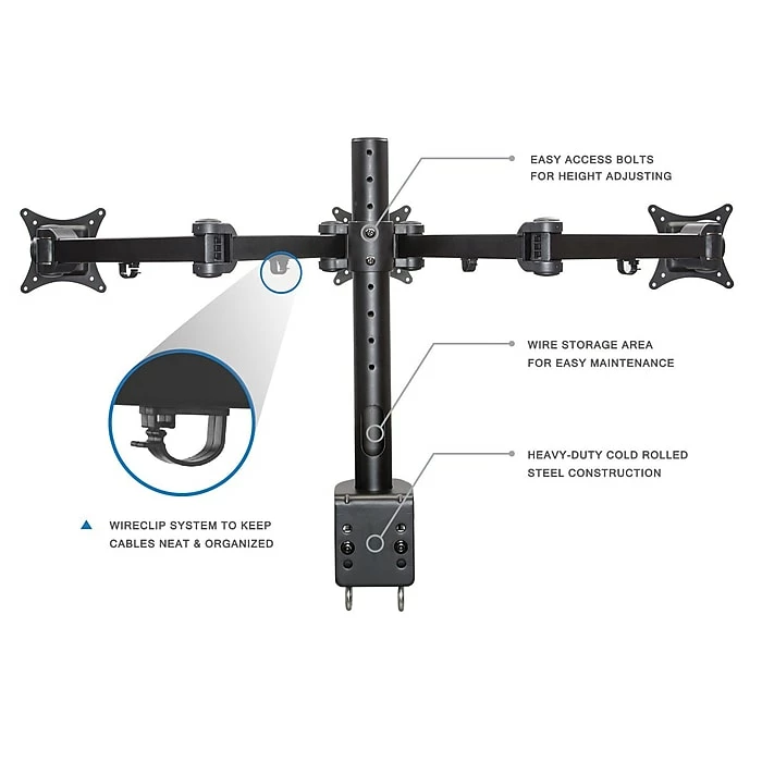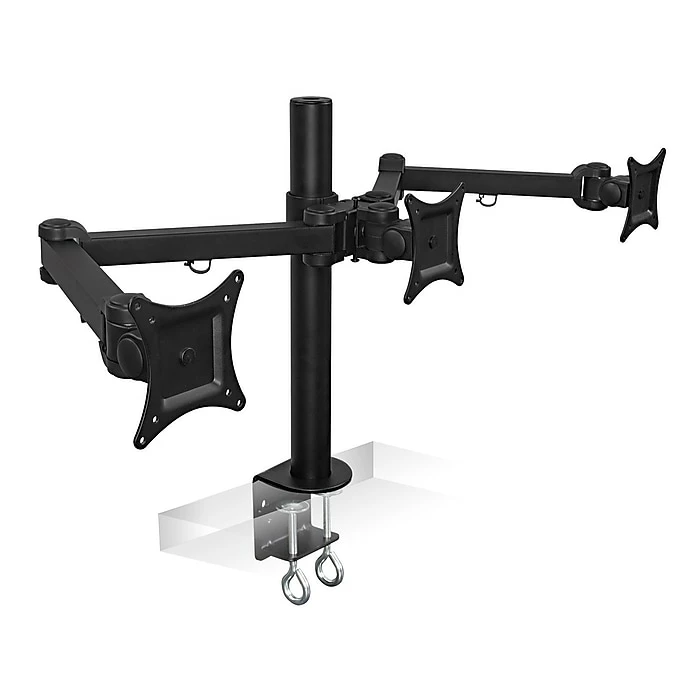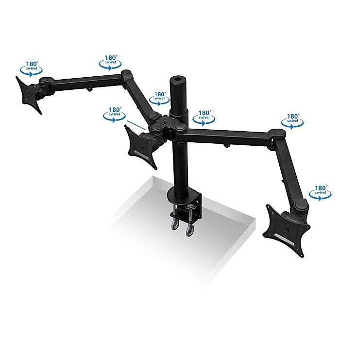 - Raise your monitor to a comfortable viewing height with this triple-monitor desk mount