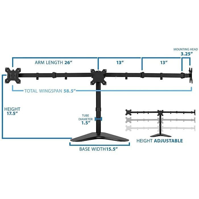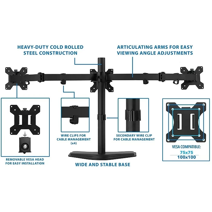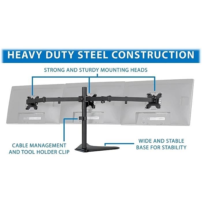 - Holds three monitors weighing up to 15.4 lbs. each
