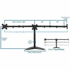 - Each arm holds a flat-panel monitor up to 32″ for versatile use