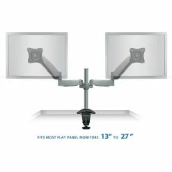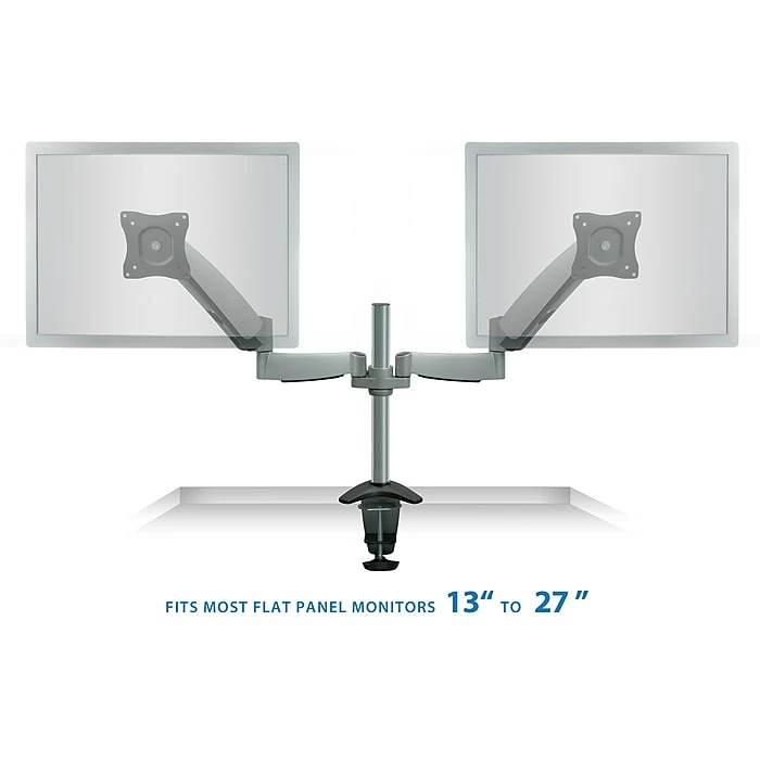 - Raise your monitors to a comfortable viewing height with this dual monitor desk mount