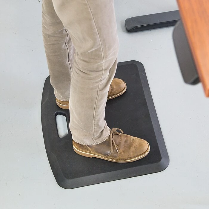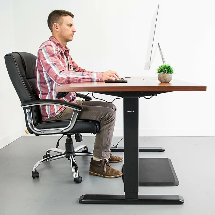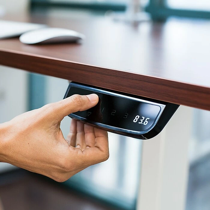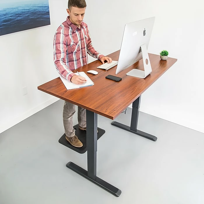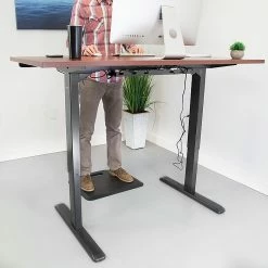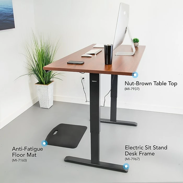 Transform your workspace into a healthy sit stand workstation that adapts to you and allows you to move more throughout the day. This electric standing desk frame paired with our easy to clean nut-brown tabletop is designed to look good in any space, while keeping you healthier throughout your work day. Our soft anti-fatigue mat is the finishing touch in this bundle and allows you to stand for longer periods of time, by reducing the pain and discomfort usually felt by standing on hard surfaces.Electric standing desk frame makes the transition from sitting to standing easier throughout the day. Features an easy to clean nut brown finish tabletop and an LED digital touchscreen controller with programmable height settings and a timer function.The electric desk frame is height Adjustable from 28.5” to a maximum height of 48”, allowing you to customize the height throughout the day.It is important to pair your height adjustable standing workstation with a soft anti-fatigue mat, designed to eliminate or reduce pain while standing for long periods of time.