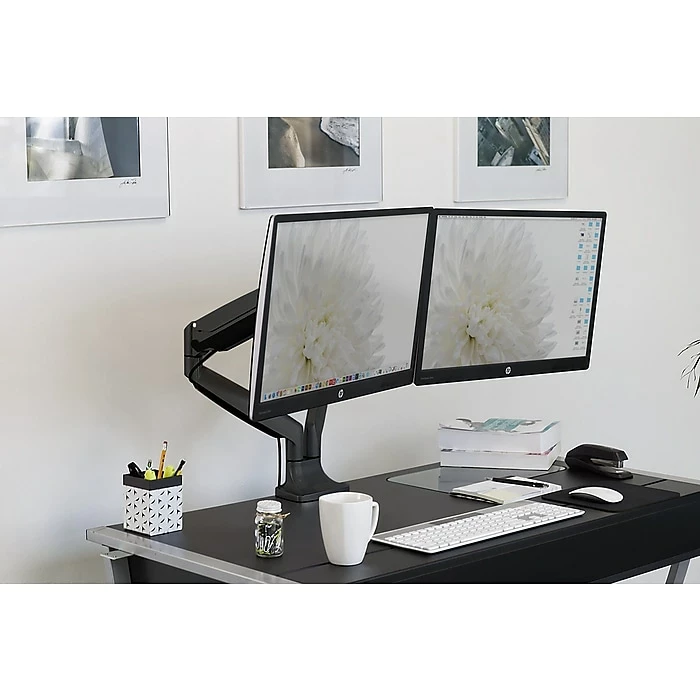 - Dual Monitor Desk Mount Stand fits most of 13″ -32″ Displays