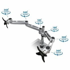 - Gas Spring Arms have Tilt, Swivel, Height Adjustable and Rotating Features