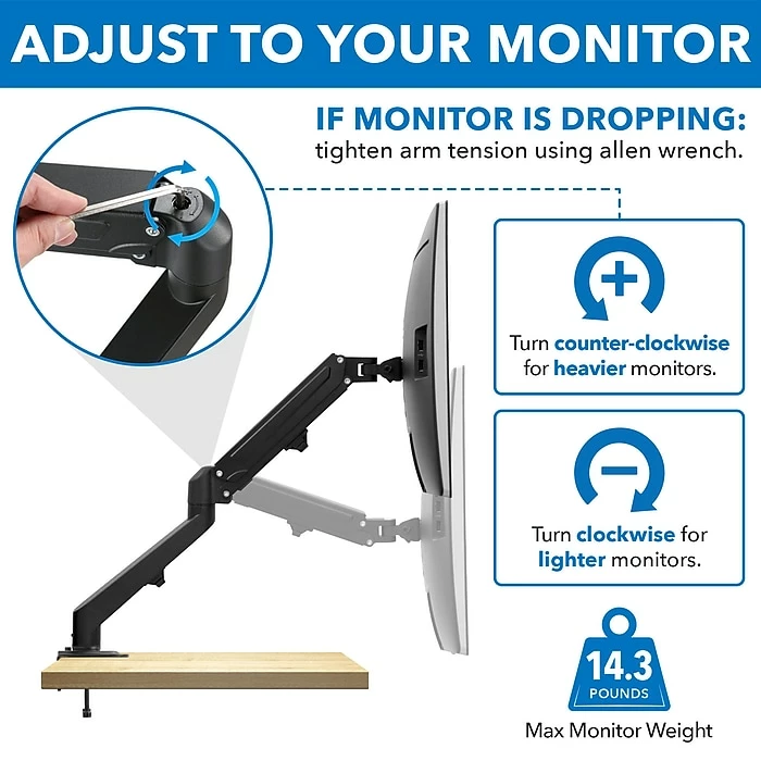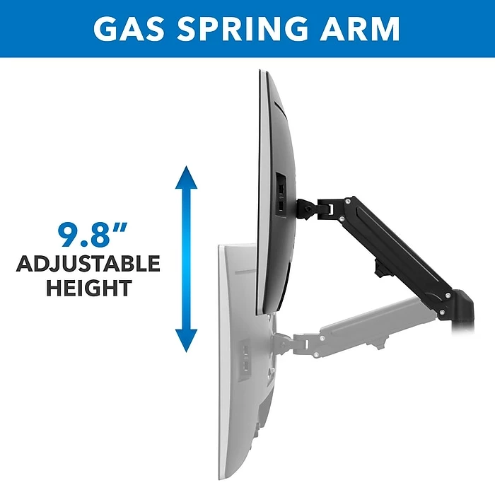 - Full-motion gas spring arm allows for easy monitor adjustments to perfect your workspace throughout the day