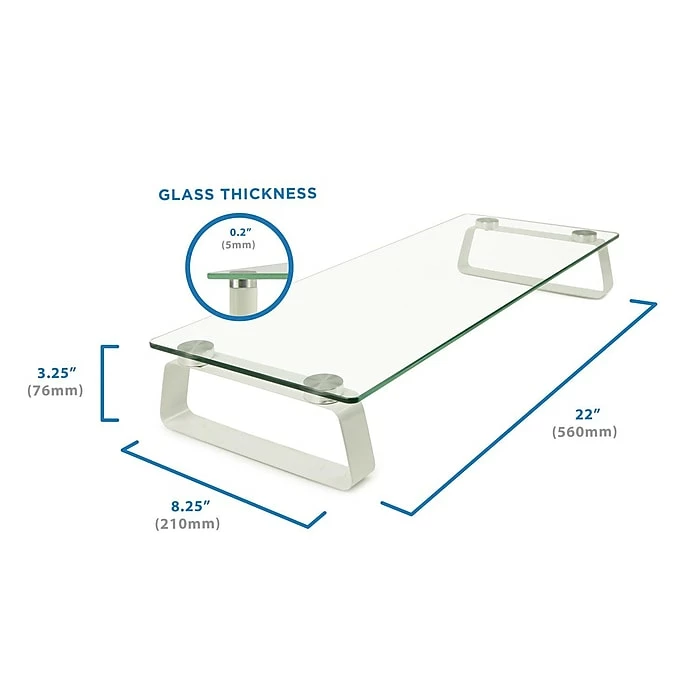 Mount-It! MI-7262 monitor stand elevates the display to a more comfortable height for optimal viewing experience and help reduce neck and eye strain. Contemporary design with the premium glass and Aluminum materials used makes it a perfect fit for any room or office. It is ideal for cramped workstations and desks as it expands your work area upward, maximizing your available work area.