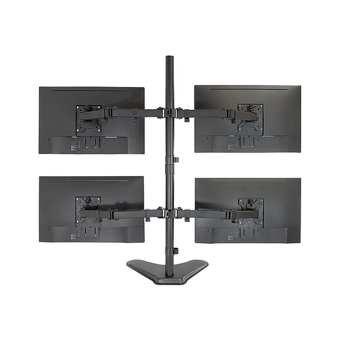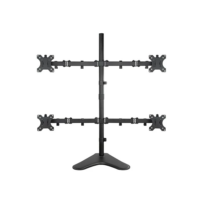 - Raise your monitors to a comfortable viewing height with this quad monitor desk stand