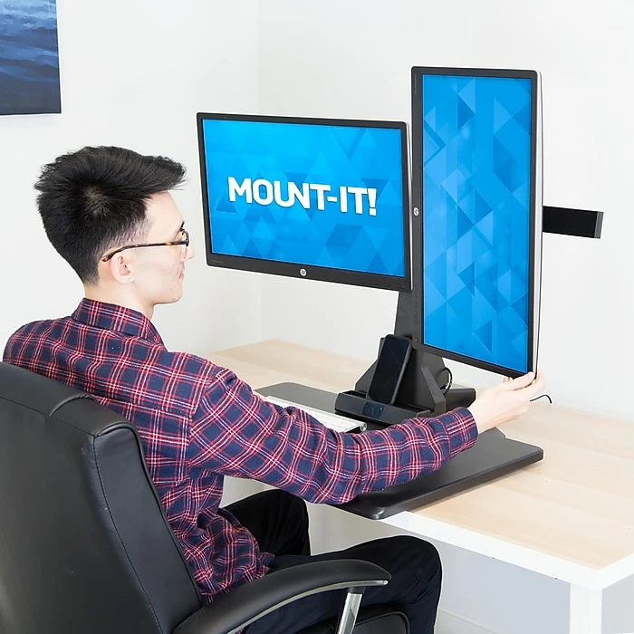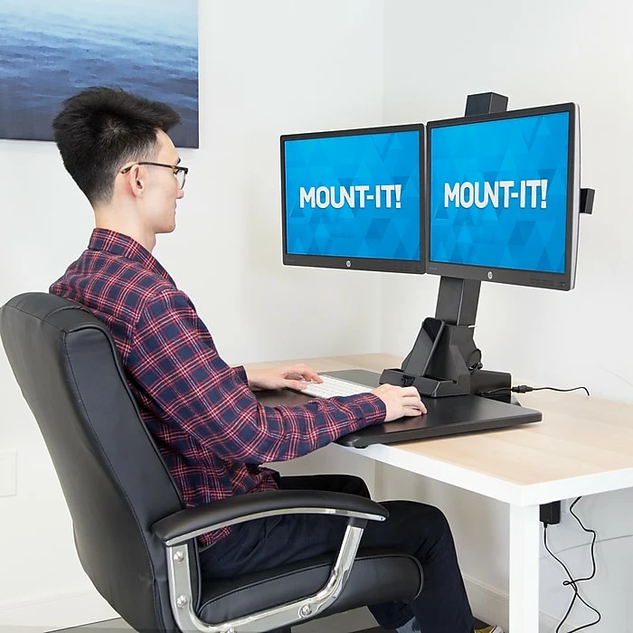 - Electric Standing Desk Converter with Dual Monitors